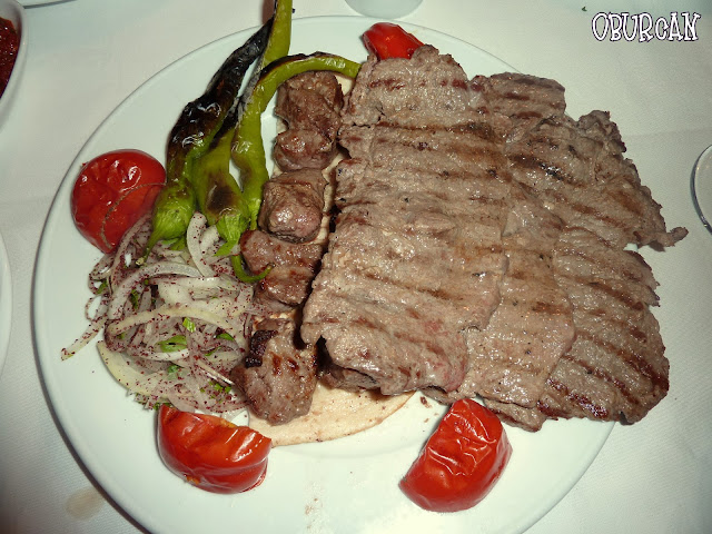 Önce , adet olduğu üzere işletmeden bir ikram geliyor. Domates ezmenin tadı güzel. Ancak kebapçılarda alıştığımız gibi yanında fırından yeni çıkmış , dumanı tüten , pofuduk lavaş yerine dilim ekmek gelmesi ilginç oldu.
